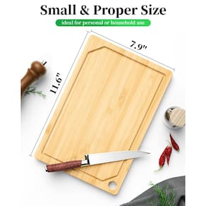 3. Feita de bambu 100% natural, a tábua de corte Kitsure é uma excelente escolha para preparação de alimentos. Não inferior à tábua de corte de açougueiro, a tábua de corte de carne Kitsure é adequada para cortar e cortar pesados. Sua superfície lisa e pré-lubrificada é excepcionalmente suave em facas, ajudando a manter suas lâminas afiadas por mais tempo.