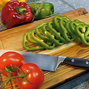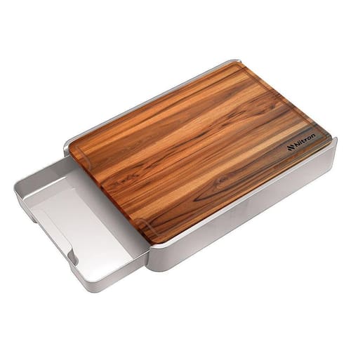 Benefícios da tábua de corte em madeira teca com suporte de gavetas: