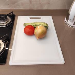 A tábua multicorte profissional branca é utilizada por chefs e profissionais em cozinhas de restaurantes, bares, hotéis, hamburguerias e lancherias para cortar, picar, fatiar e trinchar carnes, legumes, frutas e verduras de forma prática, eficiente e segura. A tábua de corte de alimentos profissional é feita em poliestireno e possui resistência a cortes, alta durabilidade e proteção contra bactérias e fungos. Essa tábua multicorte profissional não retém cheiro, não é tóxica e não retém umidade, ideal para o uso no dia a dia para o preparo dos alimentos.