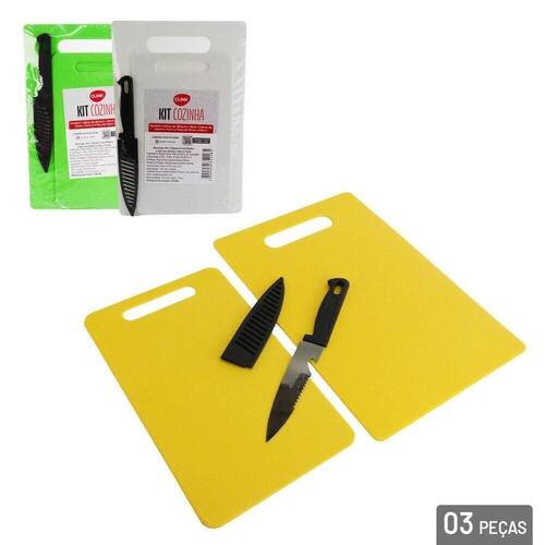 Tábua de Corte Plástico 2 Peças com Faca C - Kit Cozinha em plástico altamente resistente e durável, acompanha 1 faca com lâmina de inox e capa protetora, prático para o dia-a-dia; - Contém: 1 Tábua (28,5x19x0,3cm), 1 Tábua (24x140,3cm), 1 Faca (21x2,8cm); - Disponível nas cores: Verde, Amarelo, Branco; Informação Adicional Marca: CLINK Tipo de material : Aço Inox, Plástico Cores ou Estampa : Color Dimensões do Produto : 28,5 X 19 X 0,3 CM Dimensões da Embalagem : 28,5 X 19 X 0,3 CM Peso Bruto (Gramas) : 0.368 Marca: Não Informado