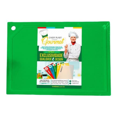 Tábua De Corte Polietileno Pead Verde 10X250X330Mm Fabricadas em plástico de alta qualidade, o PEAD polietileno é um material atóxico, aprovado e orientado pela Vigilância Sanitária ANVISA pra utilização em cozinhas residenciais ou profissionais, devido ao desempenho e facilidades do produto, aliado a segurança e manuseio dos alimentos. As diversas cores sugerem uma tábua para cada tipo de alimento, seguindo as normas internacionais de padrão de qualidade, evitando assim a contaminação cruzada. Ficha técnica - Material: Plástico - Largura: 25.00 cm - Comprimento: 33.00 cm - Cor principal: Verde - Espessura: 1.00 cm Ean: 650728040163