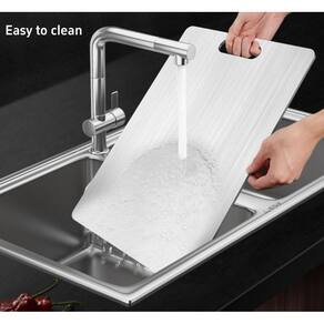 A nova tábua de corte de titânio é segura, higiênica e resistente. Você pode cortar carne, frutas e legumes facilmente. Não deixa marcas e serragem, basta limpar a superfície com água e a limpeza é fácil.
