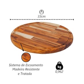 01 Tábua de Corte Redonda Madeira Legumes Carne Churrasco 33cm.