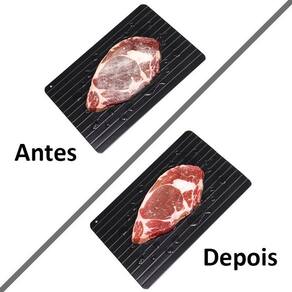 - características importantes do produto: A tábua é feita em material condutor térmico que acelera o processo, descongelando naturalmente carnes, aves, peixes, etc.