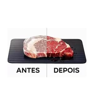 Características: - Feita em aço carbono - Descongela alimentos 4x vezes mais rápido do que naturalmente - Não precisa esquentá-la, apenas coloque o alimento em cima e aguarde - Prático e extremamente útil