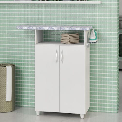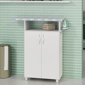 Para uma área de serviço prática e eficiente a Tábua de Passar Criativa, da Notável Móveis, é essencial. Produzida em MDP e com acabamento em Pintura UV, ela possui suporte aramado para o ferro de passar, garantindo maior segurança no manuseio, e seu tampo é com espuma e tecido! Além disso, possui 02 portas frontais com dobradiças metálicas que garantem suavidade e segurança no abrir e fechar. Internamente, possui uma prateleira para uma melhor organização dos objetos. A Tábua de Passar Criativa dará o toque de praticidade que você procura.