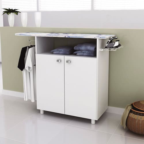 Fabricado em MDP de alta qualidade, o TP3000 possui acabamento em pintura UV, garantindo maior durabilidade e um visual sofisticado para o ambiente. Conta com 2 portas espaçosas, 1 nicho versátil para armazenar produtos ou acessórios e suporte exclusivo para ferro de passar, deixando tudo ao seu alcance durante a rotina.