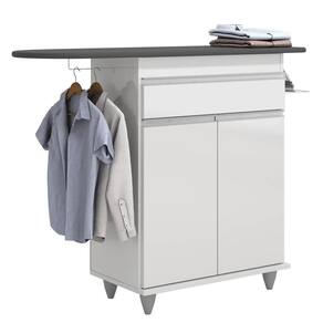 Características do Produto Material da Estrutura: MDP 15mm. Material do Fundo: MDP 3mm. Acabamento: Melamina BP. Peso Suportado: 30 Kg distribuídos. Escala de Brilho: Fosco. Possui Prateleiras: Sim. Material da Prateleira: MDP. Quantidade de Prateleiras: 1 Prateleira. Possui Portas: Sim. Material da Porta: MDP. Quantidade de Portas: 2 Portas. Tipo de Porta: Convencional. Tipo de dobradiças: Metálicas. Possui Gavetas: Sim. Quantidade de Gavetas: 1 Gaveta. Possui Nichos: Não. Possui Puxador:Sim. Possui Pés: Sim, PVC. Diferenciais: - Design moderno. - Pés reguláveis. - Suporte para ferro. - Cabideiro lateral. - Puxadores cromados. - Tábua de passar inclusa. Sistema de Montagem: Cavilhas/Parafusos. Manual de Montagem: Sim. Complexidade da Montagem: Média. Volumes: 1 Volume. Conteúdo da Embalagem: 1 Tábua de passar. Garantia do Fabricante: 90 dias contra defeito de fabricação. Montagem: Recomendamos que seja feita por um profissional. Recomendação de Limpeza: Utilize pano úmido.