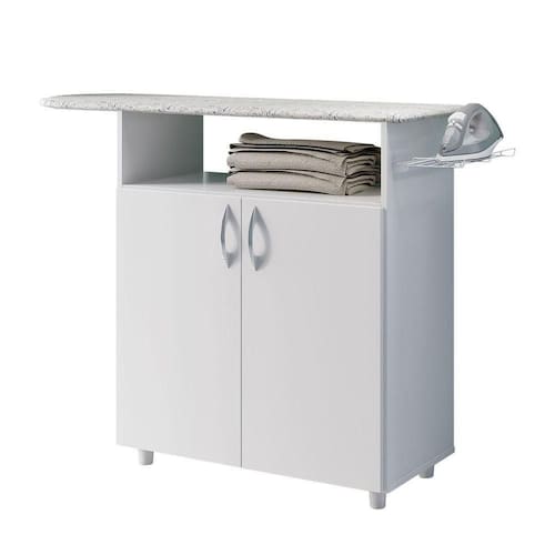 Tábua De Passar Magnólia Branco - Moveisaqui Proporcionando uma área de serviço mais organizada e prática. A Tábua Magnólia - MoveisAqui, possui suporte aramado para o ferro de passar, garantindo maior segurança no manuseio. Seu tampo, conta com espuma e tecido, trazendo mais conforto na rotina de serviço. Além de permitir a organização com duas portas.Dimensões do Produto montado:Altura: 86 cmLargura: 118 cmProfundidade: 36 cmObservações:- Duas portas;- Suporte para ferro elétrico;- Tampo com espuma e tecido;- Pintura Ultravioleta com acabamento brilho.