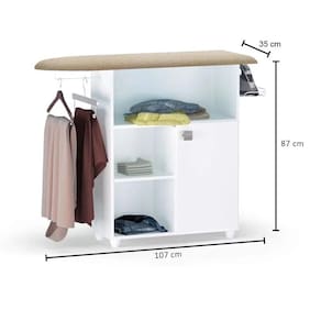 O balcão integrado possui portas que escondem prateleiras internas, permitindo que você guarde produtos de limpeza, roupas ou outros itens domésticos de maneira discreta. A Tábua de Passar Roupa com Balcão Vitória é a solução versátil para quem busca praticidade e organização no dia a dia, enquanto o tom neutro adiciona um toque de elegância ao ambiente.