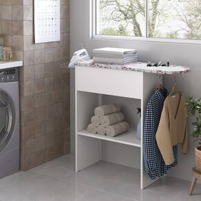 Organize sua lavanderia com muito mais praticidade e funcionalidade com a Mesa Tábua de Passar Roupa com Armário e Cabideiro. Ideal para quem busca otimizar espaço, ela alia beleza, utilidade e organização em um único móvel.? ? Características do Produto:Medidas: 105 cm (largura) x 88 cm (altura) x 30 cm (profundidade)Material: MDF/MDP de alta qualidadeTampo Estofado: Acolchoado, com tecido estampado floral, resistente ao calorCompartimento Interno: Espaço amplo para guardar ferro, roupas, produtos de limpeza e acessóriosPrateleira Inferior: Ideal para organizar toalhas, cestos ou outros itensCabideiro Metálico: Perfeito para pendurar roupas passadas e manter tudo organizadoSuporte Lateral Metálico: Para apoiar ferro de passar, cabides ou roupasDobradiças em aço: Maior durabilidade e resistênciaAcabamento: Pintura UV de alta resistênciaProduto enviado desmontado: Acompanha manual e kit de montagem???? Disponível nas cores:BrancoPretoCanela (madeirado)???? Benefícios:Design moderno e funcionalAproveitamento inteligente do espaçoProduto compacto e versátilMantém sua lavanderia sempre organizadaFácil de limpar e de montarIdeal para apartamentos, lavanderias, closets ou áreas de serviço???? Informações de Envio:Enviamos para todo o Brasil com segurança e rapidez.Produto bem embalado e protegido.???? Observações Importantes:As cores podem sofrer pequenas variações de acordo com a configuração do seu monitor.A montagem é de responsabilidade do comprador. Acompanha manual detalhado. Marca: Não Informado