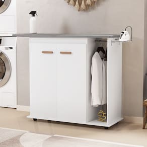 O suporte articulado acomoda qualquer modelo de ferro de passar, enquanto as rodas permitem fácil movimentação e os freios garantem estabilidade onde você precisar. Com acabamento em pintura e verniz U.V., este produto combina beleza e durabilidade.