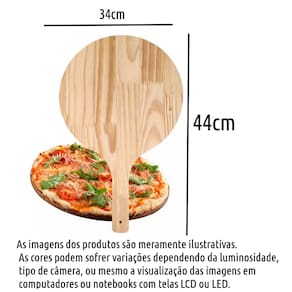Tábua de madeira facilita o manuseio da sua pizza!Com a borda mais fina, o deslize da pizza fica ainda mais fácil quando for levada ao forno.Não é indicado usá-la para manusear a pizza dentro do forno. Pra isso use pá de alumínio ou inox.Principais Características:Composição: Madeira Diâmetro da pá: 34 cm;Comprimento do cabo: 10cm;Conteúdo: 1 Unidade;ATENÇÃO: A cor da madeira pode sofrer variação de tonalidade por questões naturais do produto.*Imagens meramente ilustrativas.Aviso legal• É livre de BPA.Modelo Tábua de Pizza Forno Lenha Pizzaria Churrasqueira Cozinha Espátula Redonda Profissional Gourmet Assar Pão Pães Massas Bolo Gás ElétricoForma RedondaEspessura 1,5 cmCor MadeiraFormato de venda UnidadeInclui gaveta NãoÉ apto para lava-louças: Não