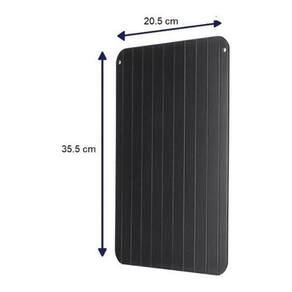 Com dimensões de 35,5 x 20,5 x 0,1 e peso de 390g, essa tábua é prática e fácil de usar. Basta colocar os alimentos congelados sobre a bandeja e aguardar o resultado mágico. Adeus microondas e métodos tradicionais de descongelamento demorados!