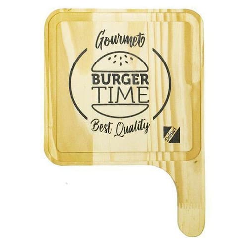 Tábua de Madeira Natural para Hamburguer Debiasi Essa tábua veio pra dar um detalhe no seu espaço gourmet, na cozinha ou área de churrasqueira Sirva seus lanches para os seus convidados com muito estilo, e deixe a noite ainda mais especial Ela também é uma excelente opção para presentear aquele seu amigo ou familiar que gosta de inventar coisas na cozinha. Caso você tenha uma hamburgueria, essa tábua fará toda a diferente na apresentação dos pratos para seus clientes. Feita em madeira maciça Pinus estufada, o material é resistente ao corte e possui sulcos que não deixam que o líquido do lanche escorra e suje sua mesa Bem pensado, né ;-