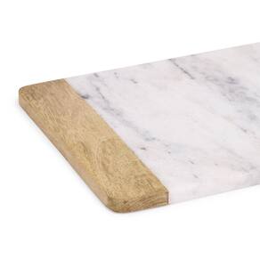 Produzida em mármore e madeira, a tábua combina a elegância da pedra natural com o toque acolhedor da madeira, criando um visual moderno e sofisticado. O contraste entre os materiais valoriza o design da peça e proporciona uma apresentação diferenciada para servir alimentos.
