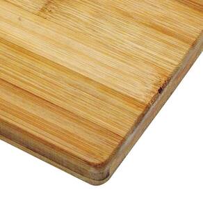 A tábua de corte é um utensílio coringa na cozinha.Além de ser amplamente utilizada na preparação de receitas, como apoio para corte de carnes e vegetais, a tábua de corte também pode ser muito útil para deixar a tarefa de servir mais prática. Deixe sua cozinha mais charmosa, bonita e moderna com a tábua para carne em madeira de bambu com alça. Um objeto indispensável para a sua cozinha que facilita os cortes dos alimentos sem tirar o fio da lâmina. O bambu passa por um processo industrial onde é cortado em várias tiras que são lixadas, niveladas e unidas com cola atóxica, depois são torneadas no formato do produto e finalizadas com acabamento uniforme.