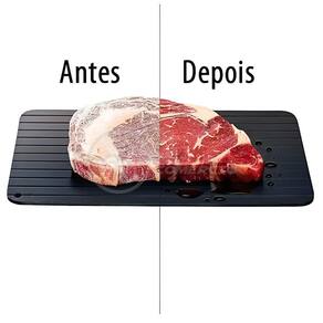 Feita com alumínio especial, essa tábua reduz drasticamente o tempo de descongelamento. O que antes levava uma hora, agora pode ser feito em apenas 25 minutos! Ideal para carnes, legumes, frutas e peixes, ela transforma sua rotina culinária com simplicidade e inovação. Além disso, com seu design elegante na cor preta, ela se adapta perfeitamente a qualquer estilo de cozinha.