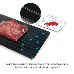 Você já perdeu tempo esperando horas para descongelar alimentos? Sabemos como isso pode atrasar o preparo das refeições. Com a rotina cada vez mais acelerada, esperar para cozinhar não é uma opção. Foi pensando nisso que trouxemos uma solução inovadora: a "Tábua Mágica", uma ferramenta que acelera o processo de descongelamento, garantindo mais praticidade e eficiência na sua cozinha.   Feita com alumínio especial, essa tábua reduz drasticamente o tempo de descongelamento. O que antes levava uma hora, agora pode ser feito em apenas 25 minutos! Ideal para carnes, legumes, frutas e peixes, ela transforma sua rotina culinária com simplicidade e inovação. Além disso, com seu design elegante na cor preta, ela se adapta perfeitamente a qualquer estilo de cozinha.   Características do Produto: - Material: Alumínio de alta condutividade térmica; - Cor: Preta; - Dimensões da Tábua: 29,5 cm de largura x 20,8 cm de altura; - Descongela rapidamente diversos tipos de alimentos; - Praticidade e eficiência em cada uso.   Itens Inclusos: - 1x Tábua de Alumínio.