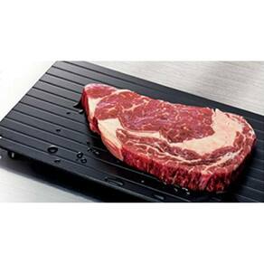 Descongele carnes a temperatura ambiente e sem uso de eletricidade.Ao invés de fornos de microondas que cozinham parcialmente a comida durante processo de descongelamento, a bandeja descongela os alimentos com segurança e rapidez.A tábua permanece fria durante o uso, não é utilizado aquecimento através de eletricidade ou água quente. Basta colocar o alimento à ser descongelado sob a tábua e mantêlos em temperatura ambiente. O descongelamento ocorre até 3 vezes mais rápido do que se o alimento fosse mantido sob outra superfície. Atenção: Características Técnicas/EspecificaçõesMaterial: Alumínio fios condutores de calor Dimensões: 16,5 x 23 x 0,5 cmPeso: 309 gDependendo da espessura dos alimentos, alguns podem demorar mais para descongelarSem produtos químicosFácil de limpar