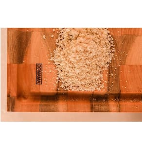 Material: Madeira de alta qualidade Dimensões: 40 cm (largura) x 30 cm (comprimento) Espessura: 40 mm Design: Tábua invertida para coletar sucos e manter a carne suculenta
