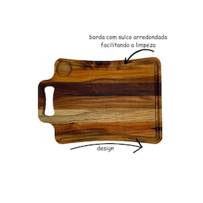 Uma tábua com design moderno de excelente qualidade, trazendo um charme a mais na hora de cortar e servir. Possui sulcos arredondados para facilitar ainda mais a limpeza e higienização. Confeccionada em madeira teca, uma madeira de reflorestamento de alta resistência, fácil secagem, peça ecologicamente correta Possui proteção antibacteriana, que inibe a proliferação de bactérias e microorganismos.