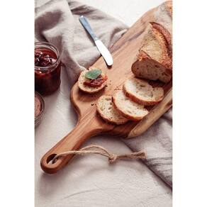 Tábua Para Pão Tramontina Provence Em Madeira Teca Fsc Com Cabo 48x19 Cm Tábua para Pão Tramontina Provence em Madeira Teca FSC com Cabo 48x19 cm Com estilo e personalidade, a Tábua para Tábua para Pão Tramontina Provence em Madeira Teca FSC com Cabo 48x19 cm segue a tendência gourmet do momento e será a companhia perfeita para preparar e servir pães, seja para o café da manhã ou qualquer outro momento do dia em que for servir aquele delicioso pão quentinho. Produzida em madeira teca de reflorestamento, a tábua tem acabamento com óleo mineral, que impermeabiliza a madeira e confere um toque aveludado à tábua, além de facilitar sua higienização. Seu cabo ergonômico, torna o manuseio muito mais fácil e prático. Com a Tramontina seus momentos à mesa ficarão ainda mais especiais!