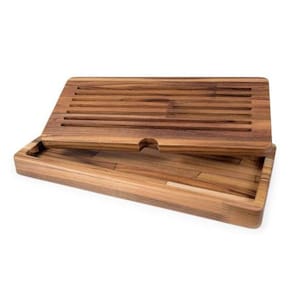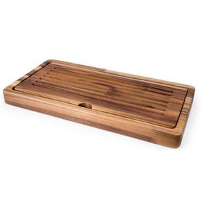Sobre o produto: Tábua de madeira teca que une funcionalidade e design em uma peça prática. Produzida em madeira teca com acabamento em cera de abelha, proporciona proteção contra umidade e desgaste, destacando a beleza natural da madeira.