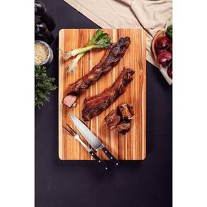A tábua churrasco com empunhadura Tramontina 600x400x45 mm fabricada madeira teca FSC com acabamento em óleo mineral é perfeita para churrascos e ocasiões especiais. Seu acabamento realça a beleza da madeira. Espaçosa, prática e elegante para impressionar seus convidados.