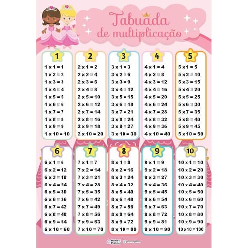 1. Facilita a Memorização: Com a tabuada completa de 0 a 10, as crianças podem facilmente consultar e memorizar as multiplicações, fortalecendo suas bases matemáticas.