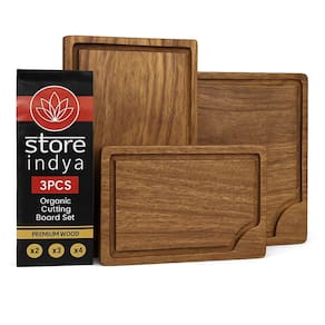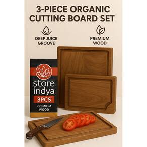 STORE INDYA Conjunto de 3 tábuas de corte de madeira – Durável, elegante e multiuso. Atualize sua cozinha com este conjunto de tábuas de corte de madeira premium de 3 peças projetado para funcionalidade, estilo e segurança. Feitas de madeira de acácia durável, estas tábuas são perfeitas para preparar refeições, cortar legumes, fatiar carne e servir lindas pastas de charcutaria. Cada tábua do conjunto vem em um tamanho diferente — pequeno (23 cm), médio (30,5 cm) e grande (38,1 cm) — dando a você a flexibilidade de lidar com tudo, desde cortes rápidos de bancada até jantares familiares grandes. Se você estiver cortando cebolas ou exibindo queijo em uma reunião, essas tábuas fazem tudo com estilo. ? Ecológica: nossas tábuas de corte são feitas de madeira 100% natural e seguras para sua família e fáceis de manusear. 🎁 Ideia de presente perfeita: este conjunto é um presente atencioso e prático para inaugurações de casa, casamentos, feriados ou Dia das Mães. Uma verdadeira atualização para qualquer cozinha. Fácil de limpar e manter: lavar à mão com água morna e sabão neutro para preservar a beleza e longevidade de suas pranchas. Adicione charme rústico e funcionalidade diária à sua cozinha com estas tábuas de corte de madeira maciça — projetadas para cozinheiros que se preocupam com qualidade e estética"