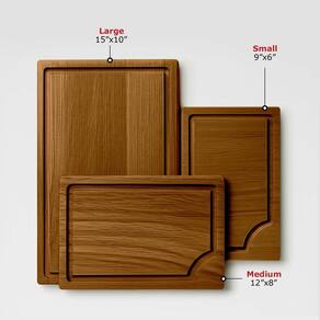 - O conjunto de tábua de corte de madeira de 3 peças inclui tábuas pequenas, médias e grandes (23 cm, 30 cm e 38 cm) para cada tarefa de cozinha. Ótimo para cortar rapidamente ou preparar refeições grandes — bem na sua bancada.