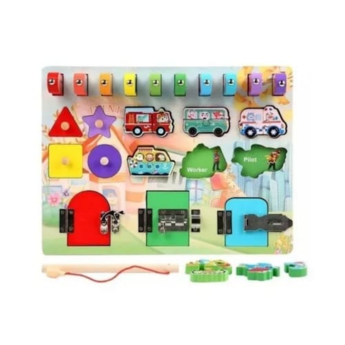 Jogo didático Montessori para crianças: prancha de pesca, renda e solução de problemas. Ele ajuda as crianças a usarem as mãos para movimentos precisos e as incentiva a gostar de usar os sentidos. Simula situações da vida para que as crianças aprendam habilidades práticas enquanto brincam. Estimula as habilidades motoras finas, a coordenação olho-mão, enquanto descobre cores, animais e ofícios. Características: Feito em madeira de alta qualidade e durabilidade, com tinta atóxica. É um brinquedo 100% ecológico. Recomendado por mais de 3 anos. Todas as nossas remessas são embaladas para cuidar do que está dentro e podem chegar ao seu destino, mantendo a melhor qualidade.