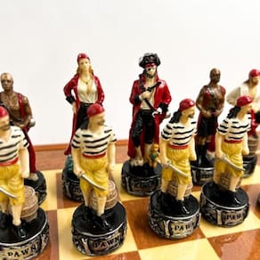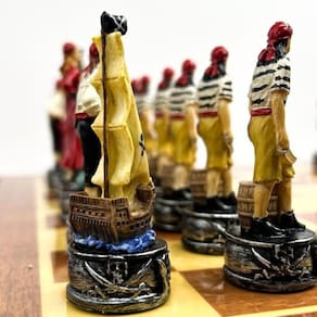 Prepare-se para a batalha e defenda seu reino com este incrível e inspirador tabuleiro de xadrez com peças inspiradas na história. Este jogo xadrez é uma verdadeira obra de arte e muito cobiçado pela sua construção impecável e sua elegância visual.
