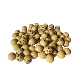 Kit Tabuleiro com bolinhas numeradas de 1 a 75 para jogo de bingo. A numeração é feita da seguinte forma: