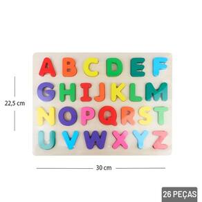 Tabuleiro Educativo 26 Peças Alfabeto de Mad O Tabuleiro Educativo é a ferramenta ideal para introduzir as letras do alfabeto de forma lúdica, sensorial e divertida. Composto por um tabuleiro com espaços de encaixe e letras móveis em madeira, o brinquedo promove o reconhecimento das letras, desenvolvimento da linguagem e coordenação motora fina, sendo perfeito para a fase da pré-alfabetização.\nAs peças são feitas em madeira resistente, com acabamento liso e pintura atóxica, garantindo segurança, durabilidade e manuseio fácil pelas crianças. O design colorido e atrativo ajuda a manter o interesse e transforma o aprendizado em um momento prazeroso.\nDisponível em cores e modelos.\nEspecificações|:\nMarca : ARK BRASIL\nTipo de material : Madeira\nCores ou Estampa :\nDimensões do Produto : 22,5 X 30 X 1 CM\nDimensões da Embalagem : 22,5 X 30 X 1 CM\nPeso Bruto (Gramas) : 0.245