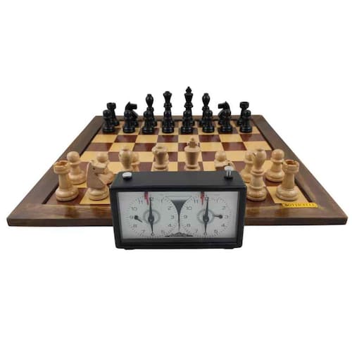 Tabuleiro Xadrez Luxo + Peças em Madeira Nobre + Relógio Analógico - 1021621