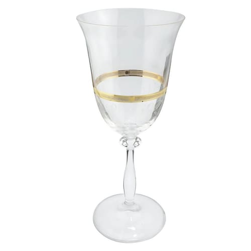 Taça de Água Ângela em Cristal com Friso Dourado 350ml - Elegância e Sofisticação à Mesa A Taça de Água Ângela é perfeito para quem deseja compor uma mesa refinada e harmoniosa. Com capacidade de 350ml, são ideais para servir água, sucos e outras bebidas com charme e elegância. Produzidas em cristal de alta qualidade, as taças oferecem brilho, transparência e resistência. O friso dourado na borda acrescenta um toque luxuoso e clássico, ideal para recepções, jantares especiais ou uso diário com estilo. Destaques do produto: Cristal premium: Alta transparência, brilho intenso e durabilidade. Friso dourado decorativo: Detalhe sofisticado que valoriza a mesa posta. Capacidade generosa: 350ml, ideal para água, sucos e bebidas leves. Design clássico: Taças ergonômicas com acabamento refinado. Especificações: Linha: Ângela Material: Cristal Capacidade: 350ml cada taça Altura: Aproximadamente 18,5 cm Diâmetro da boca: Aproximadamente 8,3 cm Acabamento: Friso dourado Cor: Transparente com detalhe dourado Marca: Não Informado Ean: 7901041402378