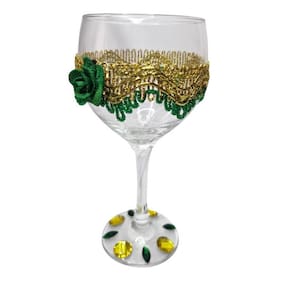 Taça Vidro Cigana Esmeralda Verde e Dourado Altar 365 ml