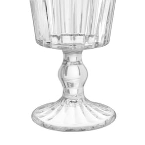 O design dessa taça possui um tamanho proporcional entre seu topo e a sua base, uma vez que essa característica não influência no sabor do líquido. Os detalhes no bojo criam um aspecto decorativo único à peça.