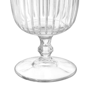 O design dessa taça possui um tamanho proporcional entre seu topo e a base, uma vez que essa característica não influência no sabor do líquido. Os detalhes lienares atribuem uma aspecto moderno à taça, a haste remete ao vidro lapidado e robusto, agregando elegância.