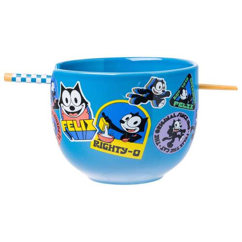 Tigela de arroz com macarrão ramen de cerâmica Silver Buffalo Felix the Cat com pauzinhos, segura para micro-ondas, 20 onças