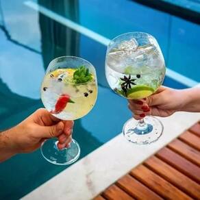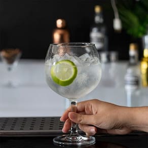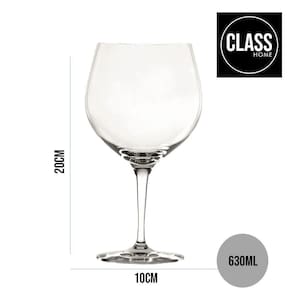 O volume de 630ml acomoda cubos de gelo e guarnições variadas, conforme a preferência de preparo da bebida. O formato da taça, com bojo amplo e haste longa, é uma característica funcional. O bojo contribui para a liberação dos aromas dos botânicos do gin e outros ingredientes. A haste permite segurar a taça sem transferir calor das mãos para o líquido, auxiliando na manutenção da temperatura ideal do coquetel por um período maior. O material em vidro não interfere no sabor da bebida.