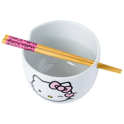 Taça de ramen de cerâmica Silver Buffalo Sanrio Hello Kitty com pauzinhos, 20 onças