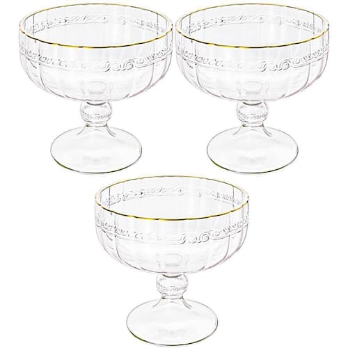 A taça para sobremesa da Lyor é fabricada em cristal, na cor tansparente com borda dourada, de grossa espessura para garantir a durabilidade e qualidade do produto. As taças possuem 200mL de capacidade, 9,2cm de altura e 10cm de diâmetro.