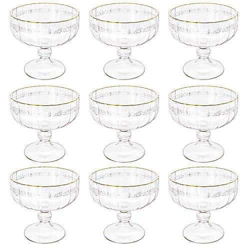 A taça para sobremesa da Lyor é fabricada em cristal, na cor tansparente com borda dourada, de grossa espessura para garantir a durabilidade e qualidade do produto. As taças possuem 200mL de capacidade, 9,2cm de altura e 10cm de diâmetro.