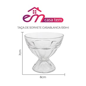 Taça De Sorvete Casablanca Em Casa Tem 100ml Taça de Sorvete CasaBlanca Em Casa Tem 100ml A hora da sobremesa fica muito mais sofisticada e elegante com a Taça Casablanca Em Casa Tem. Possui capacidade de 100ml e design clean.