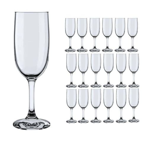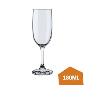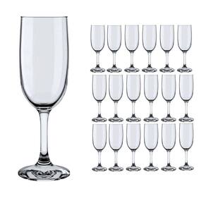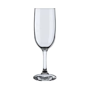 Modelo: Champagne Cor: Transparente Material: Vidro Capacidade: 180 ml Peso: 0,192 kg (Cada Unidade) Altura: 19 cm Diâmetro da boca: 5 cm