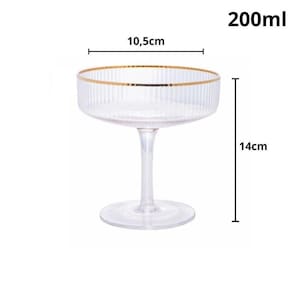 A Taça de Coupe de Vidro com Borda Dourada de 200ml é uma peça de extremo requinte e permitida para os apreciadores de bebidas especiais.