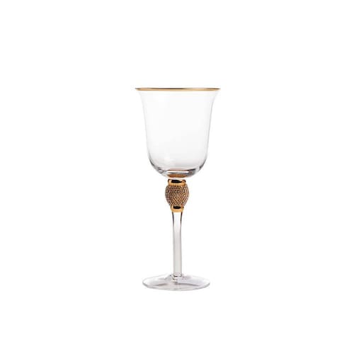 01 Taça de Vidro para Água com Strass e Borda Dourada 550ml